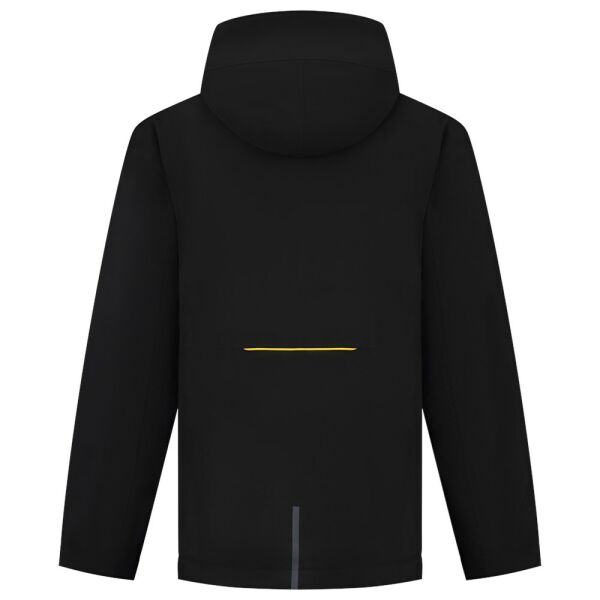 De Winter Tech Shell Accent is voorzien van een printerrits aan de onderkant van het achterpand. De schouderpartij en zoom hebben een verstevigd contrastdoek. De jas heeft een tweede rits in de hals voor een verstelbare halsopening, voor wanneer de professional een sjaal of col wil dragen. De capuchon is afneembaar en heeft verdekte koordstoppers. Er is gebruik gemaakt van hoogwaardige materialen zoals een YKK-ritssluiting en een tricot manchet met duimopening. Onder de armen zitten verdekte ventilatieritsen voor extra comfort en voor een hoger ademend vermogen. Door het koord aan de onderzijde is de jas naar wens te verstellen.