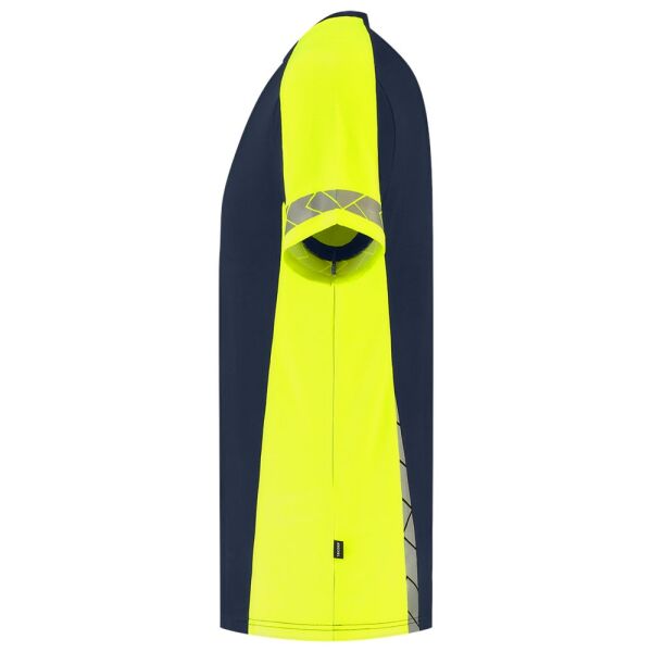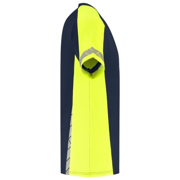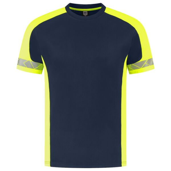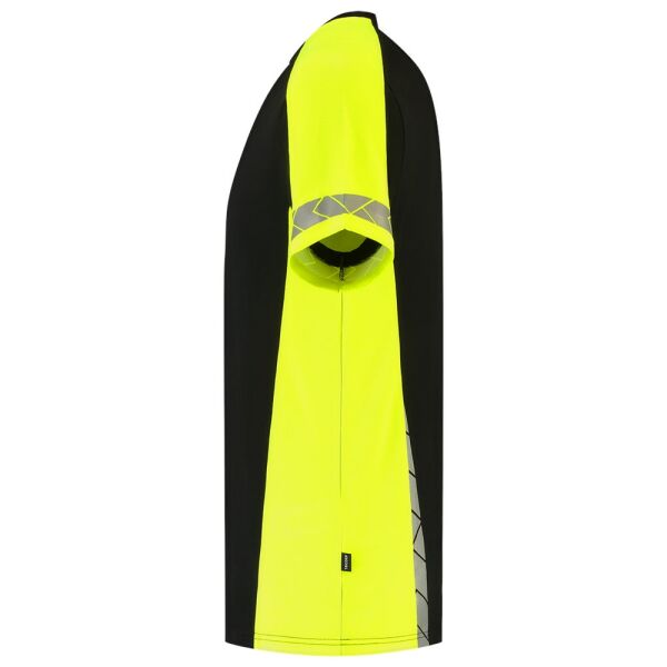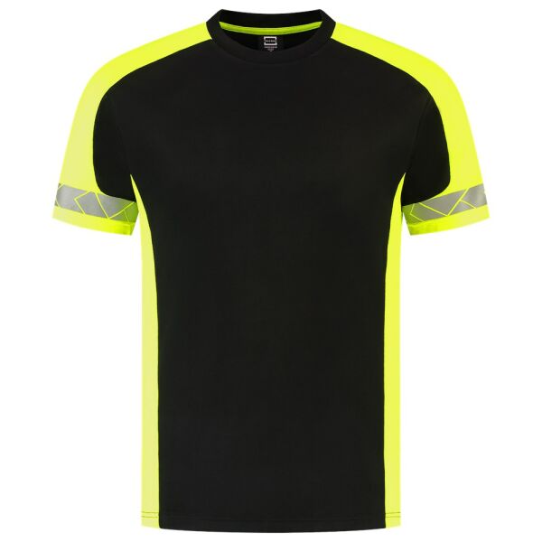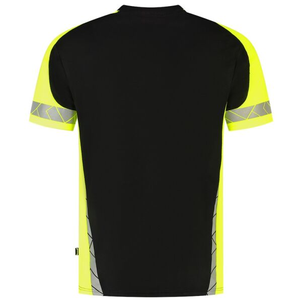Het T-shirt Reflective Redefined van Tricorp combineert duurzaamheid, comfort en zichtbaarheid, terwijl het speciaal is ontworpen voor professionals die dag en nacht veilig willen werken. Dit unisex T-shirt is gemaakt van een hoogwaardige mix van 55% biologisch katoen en 45% recycled polyester, met een doekgewicht van 180 g/m². Door de biologische katoenlaag aan de binnenzijde voelt het T-shirt zacht en comfortabel aan, met uitstekende vochtabsorptie, terwijl de polyester buitenkant zorgt voor duurzaamheid en een strakke afwerking. Dankzij de gesegmenteerde reflectie rondom de mouwen en reflecterende elementen op de rug, voldoet dit werkshirt aan EN ISO 17353 Medium Risk voor dag- en nachtzichtbaarheid. De ademende pique-structuur zorgt voor een goede luchtcirculatie, wat bijdraagt aan een comfortabel draaggevoel, zelfs tijdens intensieve werkzaamheden. Het T-shirt heeft een regular fit, een klassieke ronde hals en korte mouwen, waardoor het gemakkelijk te combineren is met andere veiligheidskleding. Het product is gecertificeerd met het GRS-keurmerk (Global Recycled Standard) en draagt het OEKO-TEX 100 label, wat garant staat voor milieuvriendelijke en veilige materialen. Het T-shirt Reflective Redefined is beschikbaar in de maten XS tot en met 5XL en leverbaar in de kleuren Black-Fluor Yellow en Ink-Fluor Yellow. Daarnaast is het T-shirt wasbaar op 60 graden en behoudt het zijn zichtbaarheid en functionele eigenschappen minimaal 50 wasbeurten. Dankzij de ingebouwde Polygiene StayFresh® technologie blijft het T-shirt fris en geurvrij tijdens lange werkdagen. Ook biedt het werkshirt betrouwbare bescherming tegen schadelijke UV-straling dankzij de UPF 40+ classificatie volgens de EN 13758-norm voor UV-beschermende kleding. Combineer dit T-shirt met andere items uit de Reflective Redefined-lijn voor een complete, professionele en duurzame werkoutfit.